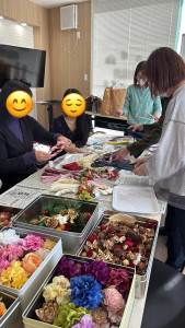 たくさんの素材の中から、皆さん思い思いのデザインを選んで、和気あいあいと楽しみながら作られていました。